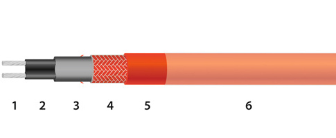Греющий кабель PerfectJet мощностью 13 Вт/м, экранированный. Полупроводниковая саморегулирующаяся матрица покрыта никелем, ее размер: 5 х 1,9 мм. Размер первой изоляции из огнестойкого полиолефина: 6 x 2,9. Имеет внешнюю изоляцию из полиолефина. Сечение токоведущей жилы 0,61 кв. мм.